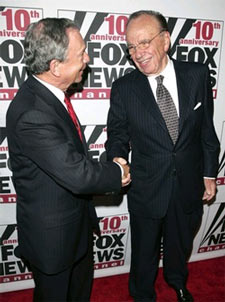 For Murdoch, quoted in the story, Bloomberg-NYT is a natural fit, as the mayor has pledged to remain a force in national public life after leaving New York's city hall at the end of next year. The prospect of competing against the combine isn't that appealing to him: "I wouldn't look forward to going up against him," Murdoch told Newsweek, citing his "great respect for Bloomberg's business abilities."[1] Murdoch, for one, sees a natural fit between Bloomberg and the Journal's uptown rival. Bloomberg, he notes, has pledged to remain a force in national public life after leaving New York's city hall at the end of next year.[5]