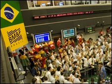 Five-year credit default swaps based on the country's debt declined 12 basis points to 108 basis points. That means it costs $108,000 to protect $10 million of the country's debt from default. Credit-default swaps, contracts conceived to protect bondholders against default, pay the buyer face value in exchange for the underlying securities or the cash equivalent should a borrower fail to adhere to its debt agreements. Emerging-market bonds, led by Argentine debt, extended gains after the Federal Reserve lowered its benchmark lending rate by a quarter-percentage point to spur growth in the U.S. economy, the biggest buyer of developing nations' exports. The Fed cut the main interest rate to 2 percent and said its reductions since September should shore up growth in the world's largest economy.[8] Harbor holds $3.5 billion of stocks in Brazilian companies. "It lowers the funding costs and the risk premium and makes Brazil a more attractive place to invest.'' The Bovespa climbed 6.3 percent to 67,868.46 in Sao Paulo trading, making the index this year's best performer among the world's 20 biggest stock markets. The real strengthened 2.6 percent to 1.6623 versus the U.S. dollar, the biggest one-day gain in the currency since Aug. 17, when the Federal Reserve unexpectedly cuts its discount rate.[3] The extra yield investors demanded to hold Brazilian debt denominated in dollars reached 24 percentage points in September 2002, the month before Lula's victory. "The upgrade is a measure of external solvency of Brazil, which not only reduced significantly its external debt, but also accumulated vast reserves, which makes solvency a secondary issue now for investors,'' said Clecius Peixoto, who helps manage $19 billion in emerging-market stocks at Emerging Markets Management LLC in Arlington, Virginia.[3] "While some deterioration is likely as the current account slips back into deficit, we expect the rise in the external debt burden to be modest," the ratings agency said. In late February, Brazil's central bank announced its currency reserves were more than four billion dollars above the country's public and private debt.[2] The long-awaited upgrade came two months after Brazils Central Bank declared that the nations debt crisis was over because Latin Americas largest country had emerged as a net foreign creditor for the first time.[5] S&P;'s announcement comes just two months after Latin America's largest country emerged as a net foreign creditor, prompting the Central Bank to declare Brazil's debt crisis over.[4]